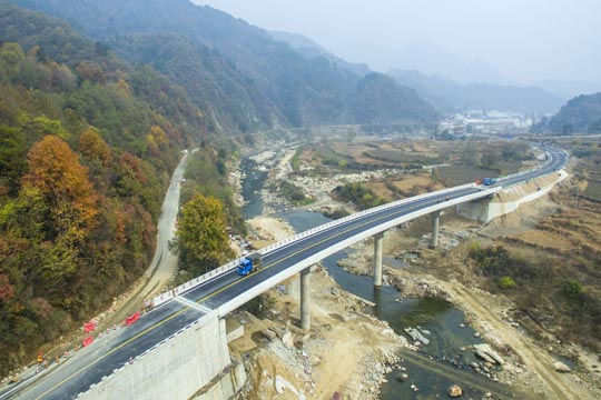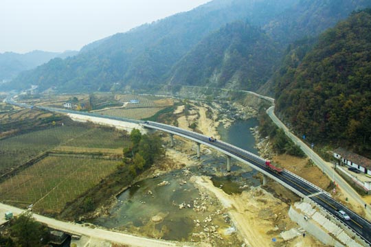 本項工程位于金寨縣燕天路上,是連接天堂寨風景區(qū)重要旅游道路。去年“6.30”特大暴雨造成漁潭村境內(nèi)山體滑坡、道路塌方、交通中斷。災(zāi)情發(fā)生后,各級政府及交通主管部門十分重視,立即組織搶修,特別是負責該路管養(yǎng)的六安市公路管理局在保障通行的前提下,以最快速度組織專家評審、論證、設(shè)計、招標、實施。該項工程全長1356米,包括2座大橋、1座中橋,中標施工企業(yè)六安市交通公路實業(yè)有限公司精心組織、全力投入、克服重重困難,經(jīng)過242天的艱苦奮戰(zhàn)終于如期、保質(zhì)、安全完成施工任務(wù)。