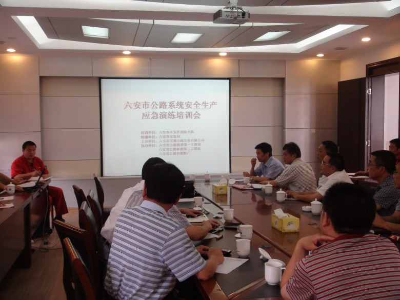 2011年06月19日,在六安市交通公路實業(yè)有限公司舉行了一場"六安市公路系統(tǒng)安全生產(chǎn)應急演練培訓會",邀請了六安市開發(fā)區(qū)消防大隊張指導員為大家進行了生動的講解,實業(yè)公司、路橋一處、路橋二處、修配廠等單位同志認真學習,通過培訓使大家增加了安全防范意識及應急處理能力,培訓尾聲市公路局及市安監(jiān)局領(lǐng)導對此次演練培訓會給予了充分肯定。