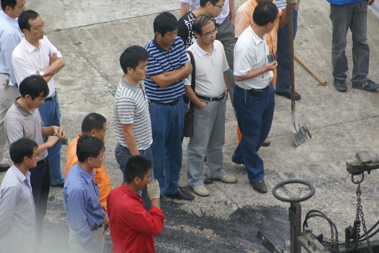 2010年9月10日上午10時,梅山路“白”加“黑”改造工程的業(yè)主,六安市建委副主任曹德林、總工周培勇攜本項目監(jiān)理單位和設計單位主要領導蒞臨我公司視察,檢查梅山路瀝青砼路面施工準備情況,并作出進一步的要求和指示,公司董事長兼總經(jīng)理萬世林同志率公司各部門全程陪同。
